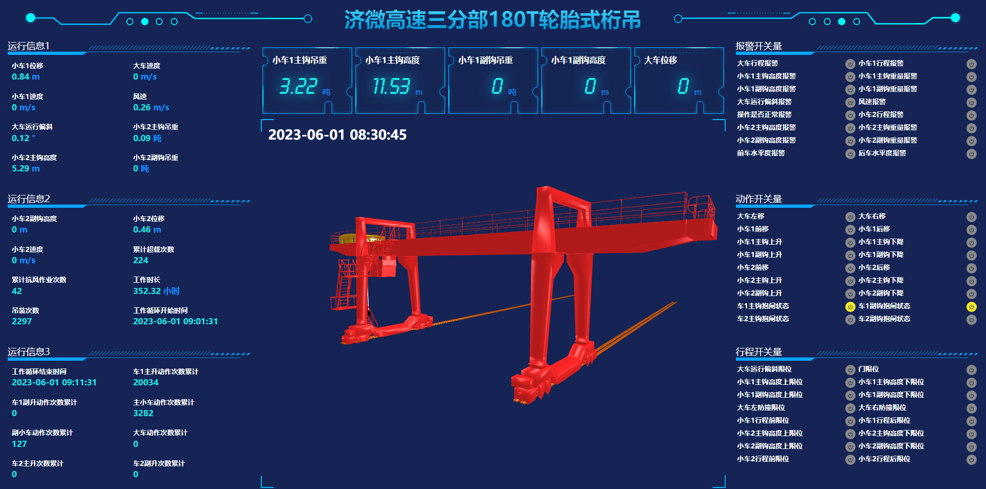 单一摄像头无法解决问题。卓越的系统通过多路高清摄像头进行战略性布局:在吊臂前端安装主钩监控摄像头,实时追踪吊具与集装箱的精准对位;在车轮侧方及后方安装广角摄像头,无缝监控轮胎周围的行人、车辆与障碍物;在驾驶室顶部安装全景俯瞰摄像头,提供上帝视角,让整机作业环境一览无余。这种多维度、无死角的布控方案,构成了一个完整的可视化安全闭环。