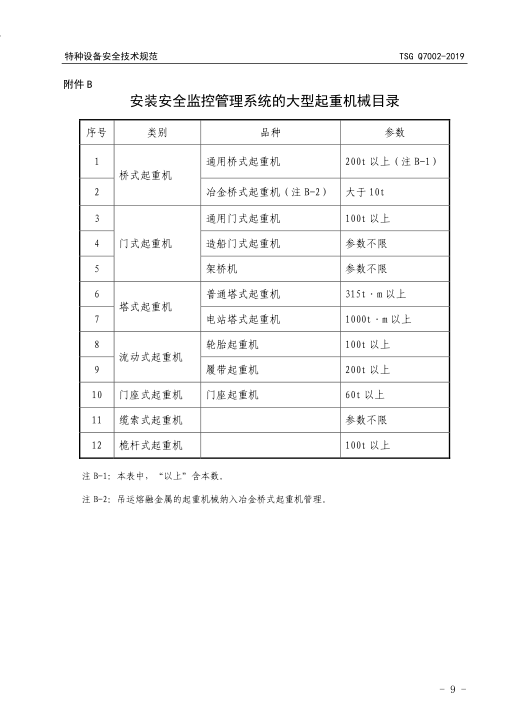 对于未在附录A中明确列出的起重机,若其实际参数(如层数、载荷、作业环境等)达到或接近同类大型设备水平,建议参照同类设备要求安装监控系统。例如:200吨以下但接近临界值的通用桥式起重机;100吨以下但作业环境复杂的通用门式起重机。